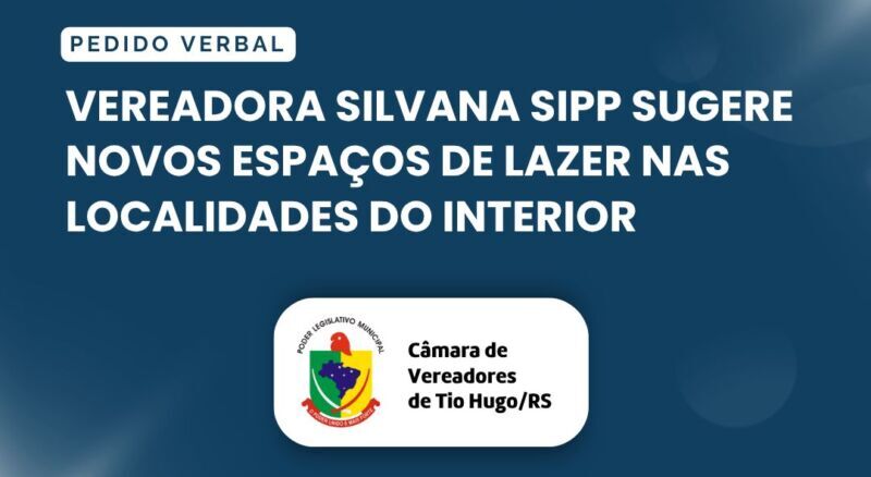 Ao pensar na qualidade de vida e no bem-estar das famílias que moram no interior do município, a vereadora Silvana Cardoso Sipp (PDT) apresentou, na sessão ordinária de 14 de julho, um pedido verbal solicitando ao Poder Executivo a criação de espaços de lazer nas localidades do interior de Tio Hugo.