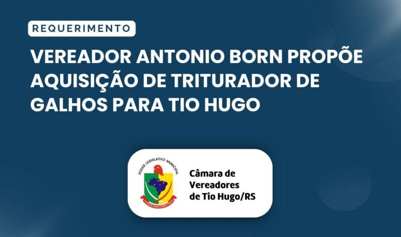 Por meio do Requerimento nº 09/2025, o vereador Antonio Vilmar Born (PDT) solicitou que o Poder Executivo de Tio Hugo estude a viabilidade da aquisição de um triturador de galhos. A proposta foi discutida durante a mais recente sessão ordinária da Câmara Municipal, realizada em 14 de julho.