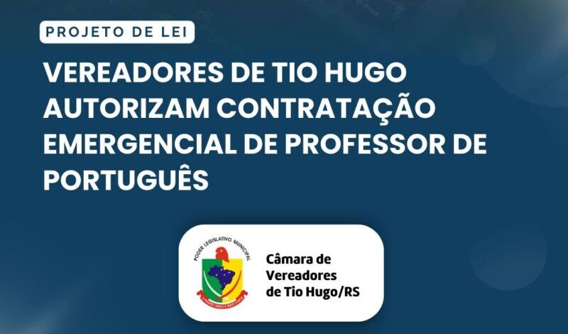 Para garantir a continuidade do ensino escolar nesta matéria, vereadores de Tio Hugo aprovaram por unanimidade o Projeto de Lei nº 37/2025, de autoria do Poder Executivo, que cria cargo temporário de professor de língua portuguesa. A proposta foi votada na sessão ordinária da Câmara Municipal de 25 de agosto, presidida pelo vereador Delcio Wiedthauper (PDT).