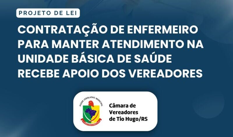 Em votação unânime na sessão ordinária da Câmara Municipal de Tio Hugo do dia 25 de agosto, os vereadores aprovaram o Projeto de Lei nº 34/2025, que autoriza a contratação temporária de um profissional de enfermagem para a Secretaria Municipal de Saúde.