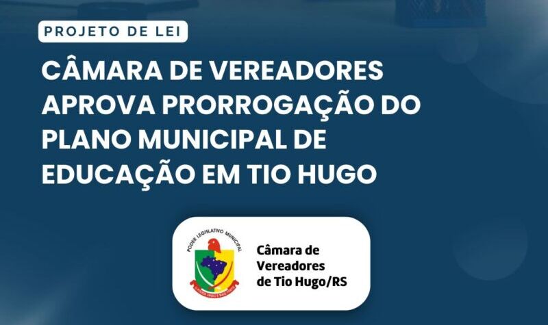 Com todos os votos favoráveis dos vereadores, a Câmara Municipal de Tio Hugo aprovou o Projeto de Lei nº 35/2025 na sessão ordinária de segunda-feira (25/08), prorrogando por um ano a vigência do atual Plano Municipal de Educação (PME).