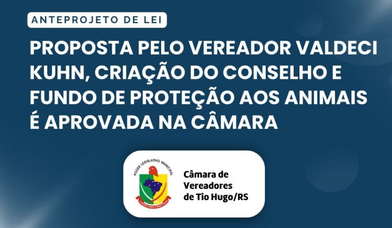 O cuidado com os animais ganhou um novo reforço em Tio Hugo. Foi aprovado por unanimidade o Anteprojeto de Lei nº 01/2025, de autoria do vereador Valdeci Kuhn (MDB), que institui a criação do Conselho Municipal de Direitos dos Animais (CMDA) e do Fundo de Proteção e Amparo aos Animais (FUPAA).